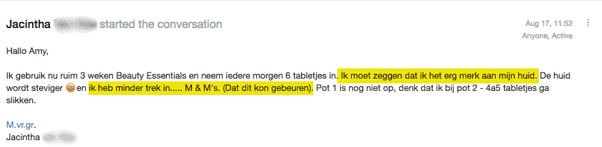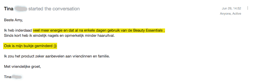 Als je denkt dat je een tekort aan aminozuren hebt, raad ik je Beauty Essentials aan, een 100% natuurlijk aminozurencomplex dat 20 (!) aminozuren levert EN ook nog eens puur natuur is.