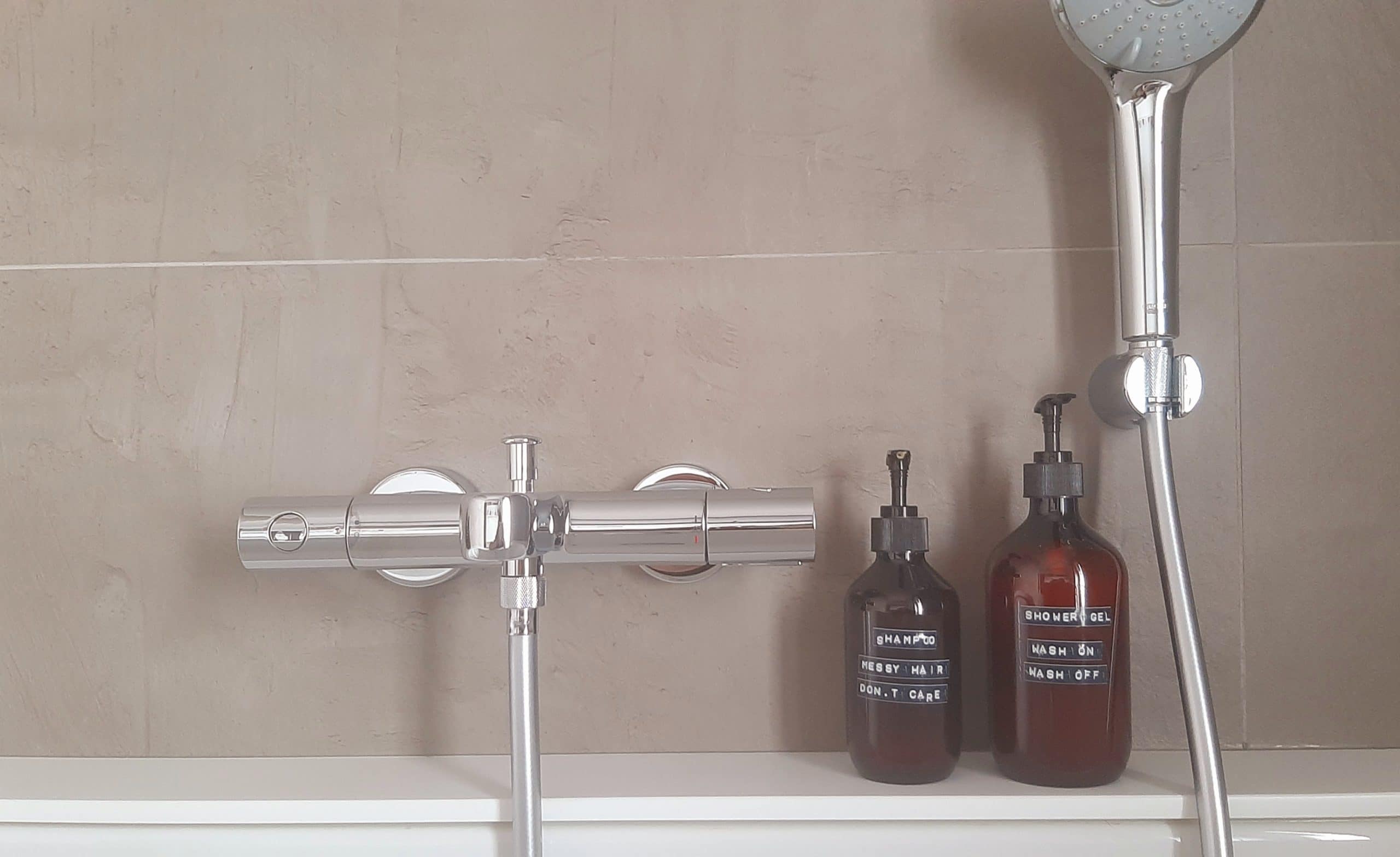Maar het geeft meteen een veel rustiger gevoel als op de rand van je bad mooie flessen staan in dezelfde stijl tegen douchegel X in felle kleur 1, shampoo Y in felle kleur 2 en dan de combi wasgel Z van de kids in felle kleur 3 en 4. Het kan al snel rommelig zijn in een badkamer en dan kan je natuurlijk niet optimaal genieten.