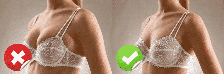 Hieronder een voorbeeldje van een foute én een juiste bh maat.