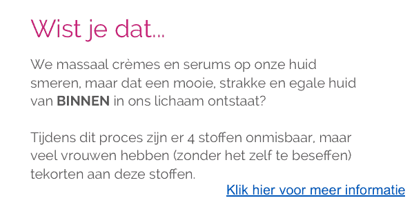 Wil je meer weten over deze 4 aminozuren voor een mooie huid, klik dan hier voor meer info.